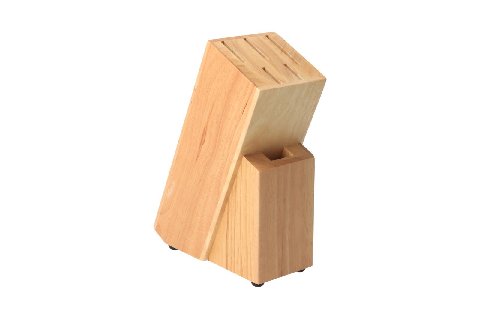 Dřevěný blok pojme 5 nožů a jedny nůžky. Je opatřen praktickými protiskluzovými nožkami pro větší stabilitu.