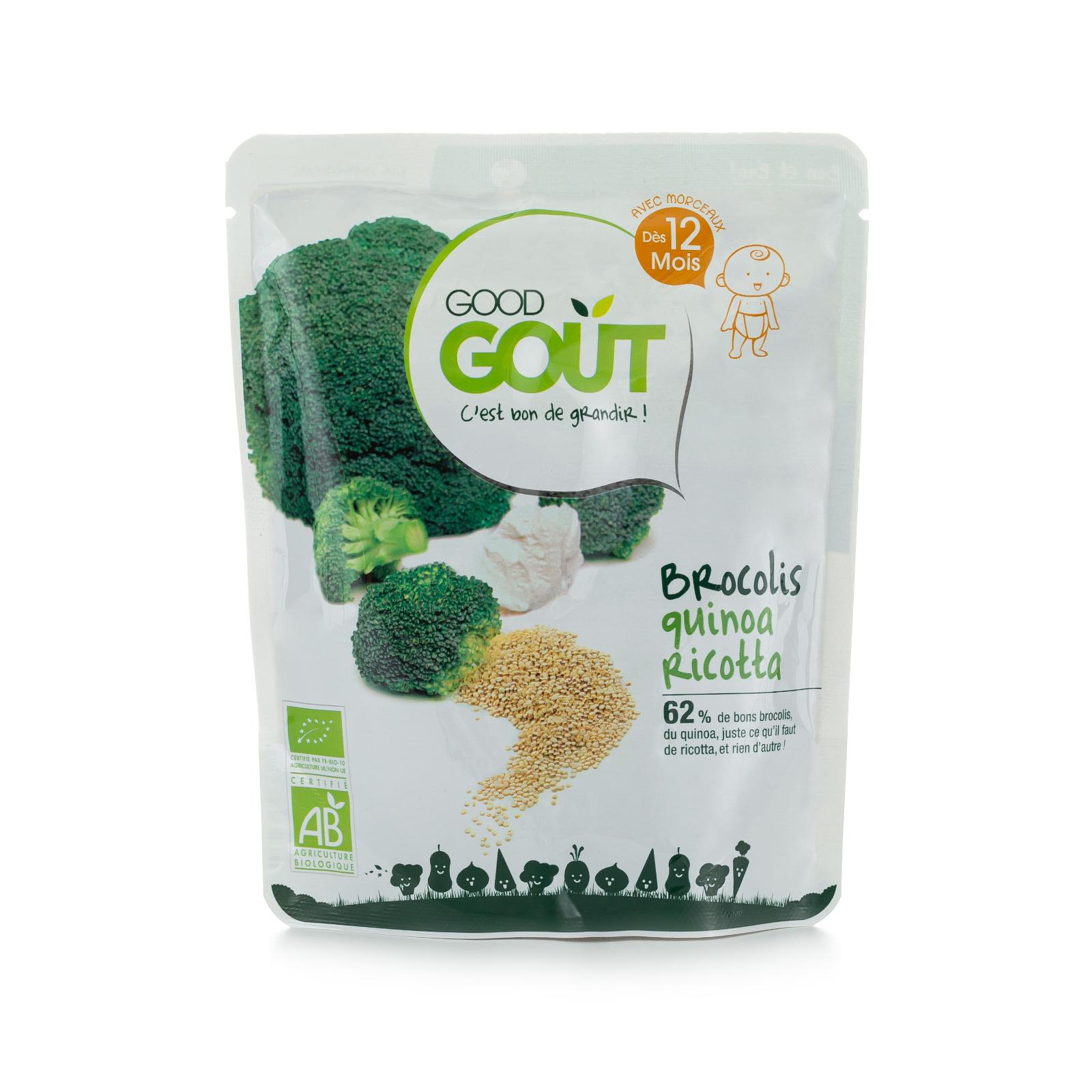 BIO Quinoa s brokolicí a ricottou GoodGout představuje zdravou, nutričně vyváženou pochoutku pro děti od ukončeného 12. měsíce věku. Obsahuje jen to nejlepší pro spokojené bříško: brokolici, ricottu a vařenou quinou. To vše v BIO kvalitě. V jednoduchosti je prostě krása! Žádné konzervanty, zvýrazňovače chuti ani přidaná barviva.