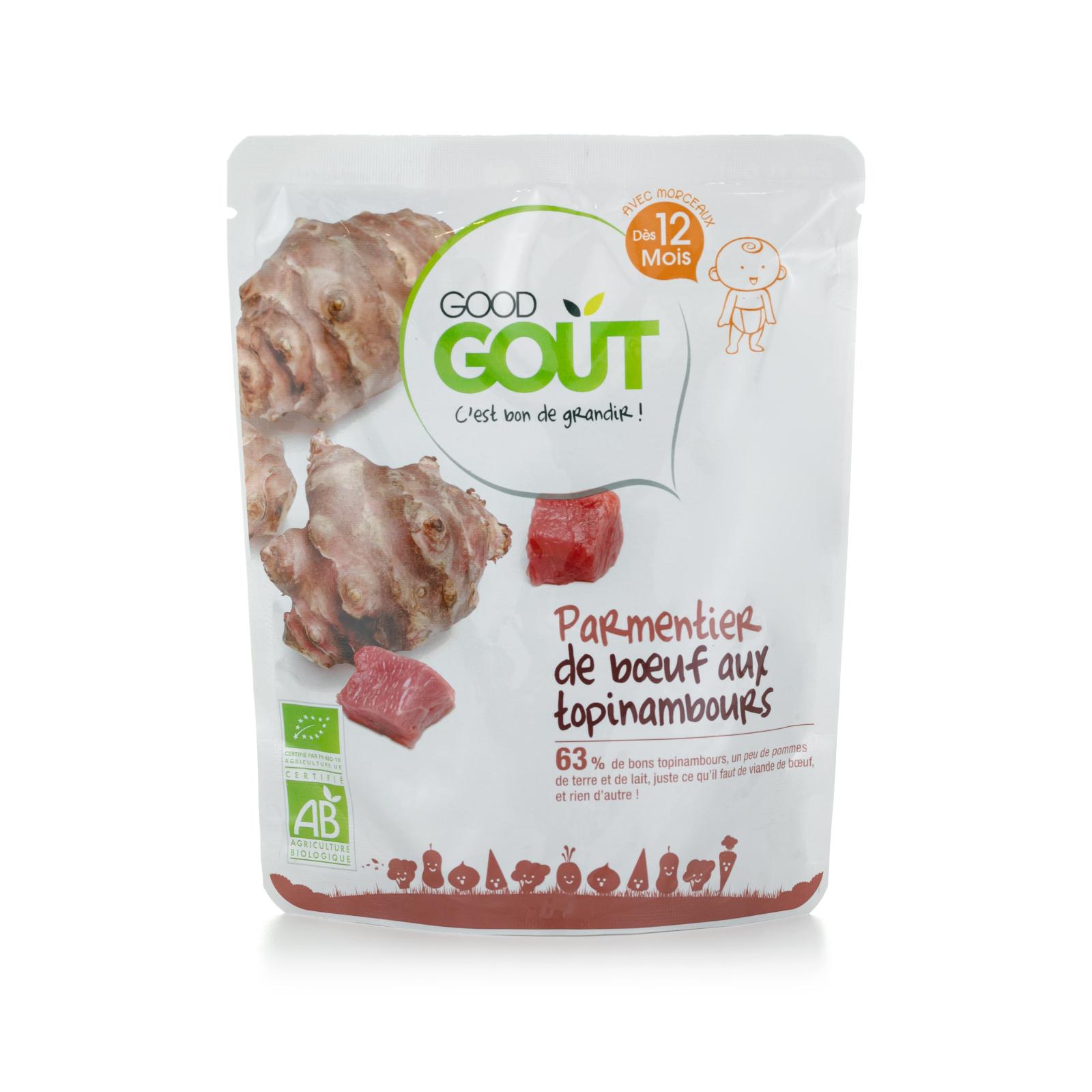 BIO Topinambur s hovězím masem od značky GoodGout představuje zdravou, nutričně vyváženou pochoutku pro děti od ukončeného 12. měsíce věku. Obsahuje jen to nejlepší pro spokojené bříško: topinambur, brambory a hovězí masíčko. To vše v BIO kvalitě. V jednoduchosti je prostě krása! Žádné konzervanty, zvýrazňovače chuti ani přidaná barviva.
