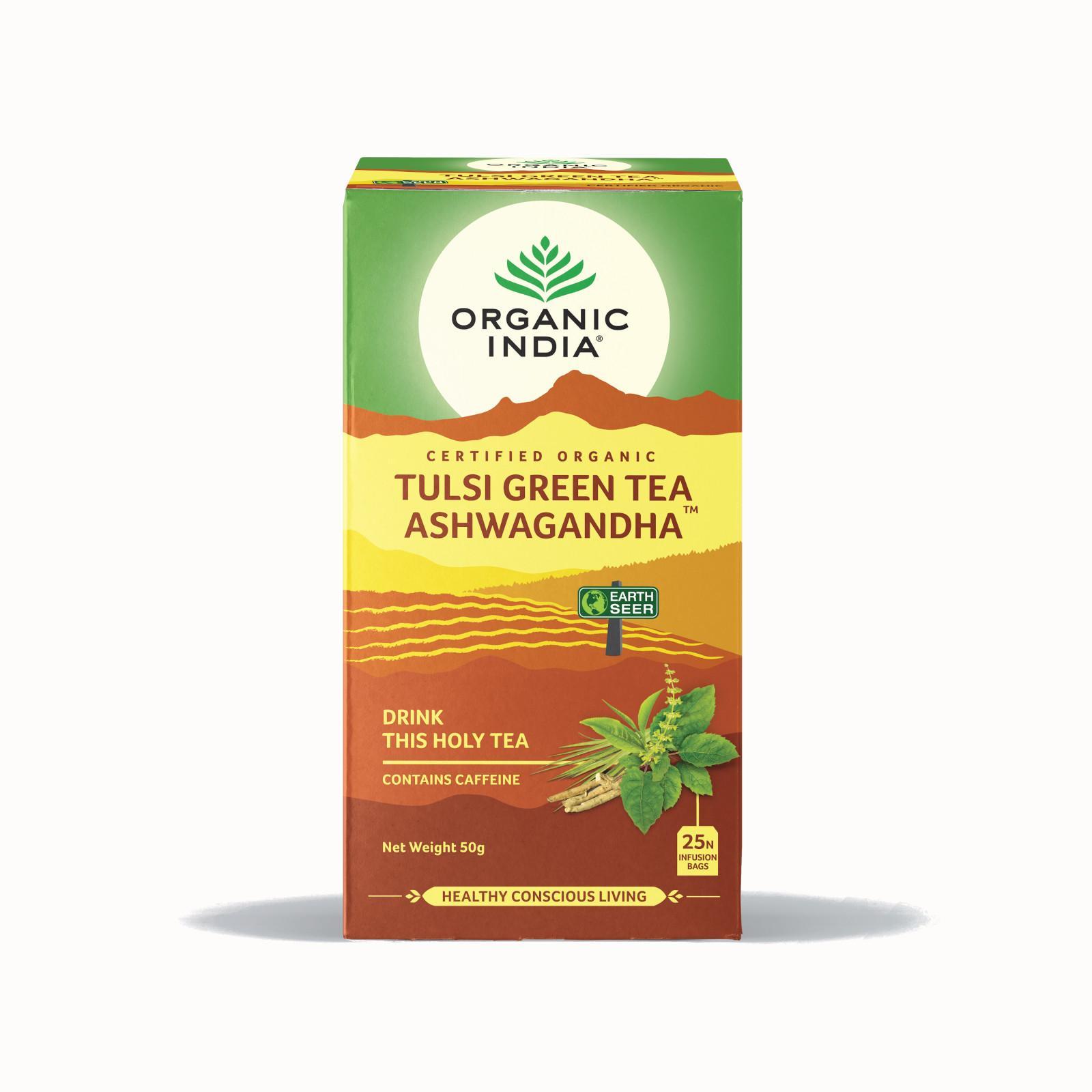 Organic India Čaj Tulsi Green Tea Ashwaganda, bio, Exspirace 08/06/2023