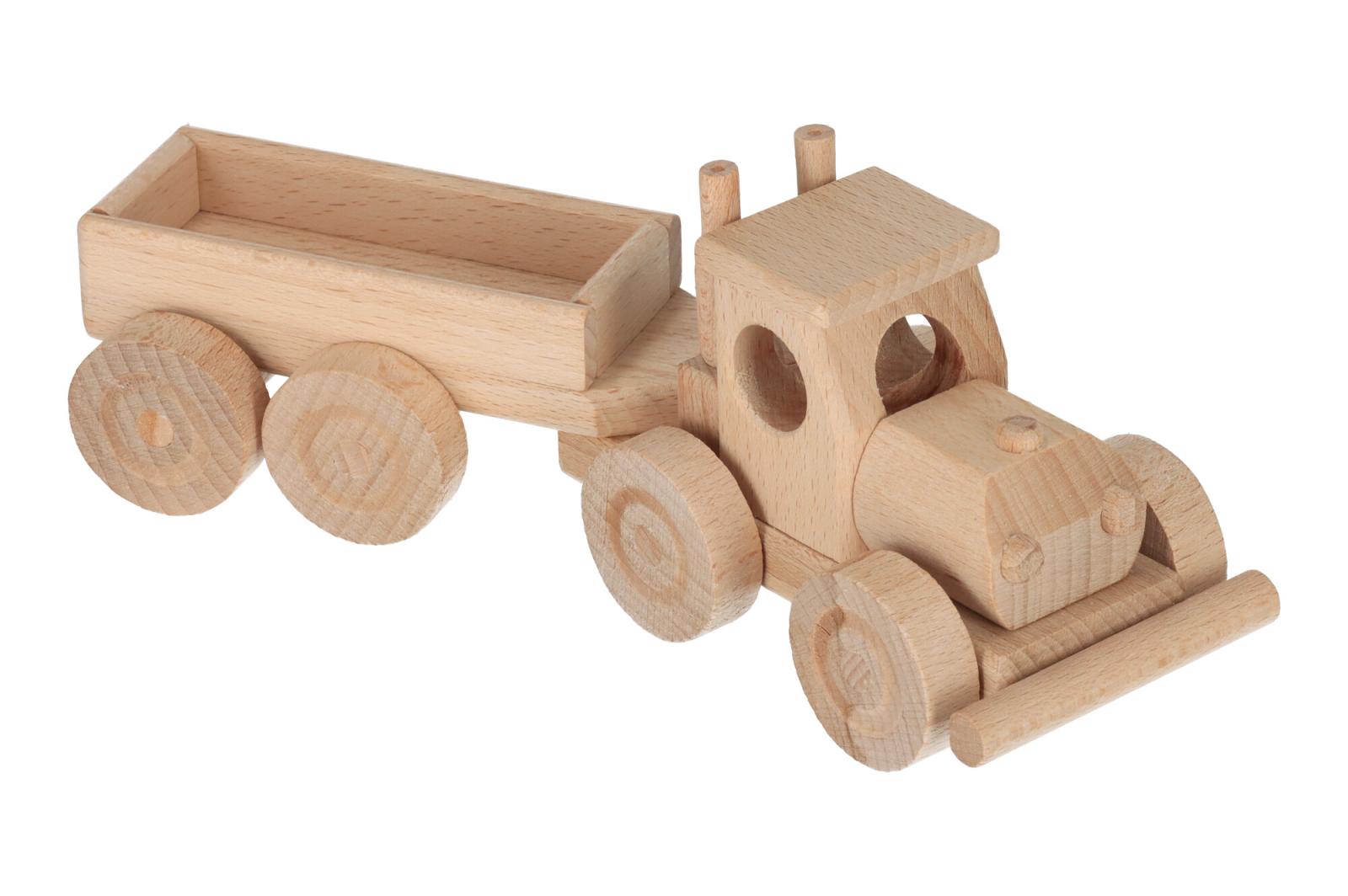 Dřevěné nákladní auto, které zajisté potěší každého malého raubíře. Náklaďák má ve vlečce úložný prostor pro převoz všeho možného i nemožného. Rozvíjí představivost dítěte, rádi si do vlečky naloží i věci, které nikam odvezt nechcete. Povrch je pouze voskován a leštěn, není nijak chemicky upravován či barven, aby byl zachován přírodní vzhled. Výrobek není vhodný pro děti do tří let.