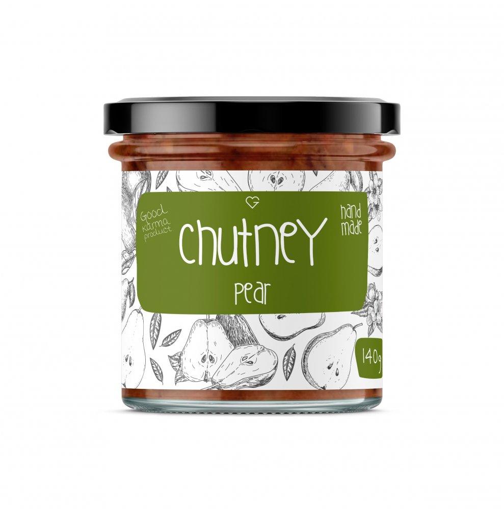 Hruškové chutney neboli čatní dodá šmrnc jednoduchým pokrmům u grilovačky, skvěle se hodí třeba i do burgerů a k sýrům. Originální receptura sladkých hrušek, ořechů a hřejivého koření má výraznou, sladce pikantní chuť. Chutney je veganské, bez laktózy a bez lepku. Vyrábí se z poctivých farmářských surovin, bez umělých přísad a konzervantů.