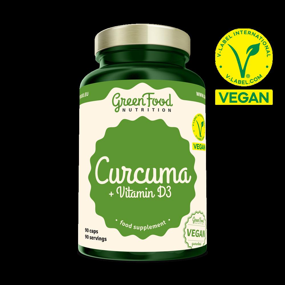 GreenFood Nutrition GreenFood Curcuma + Vitamín D3, 90 ks