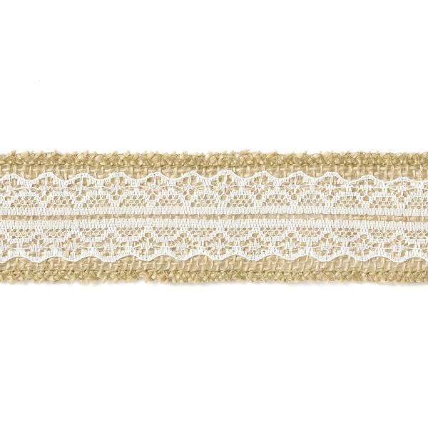 Jutová stuha s krajkou uprostřed je vyrobena z přírodních textilních vláken jutovníku, je obšitá a netřepí se.