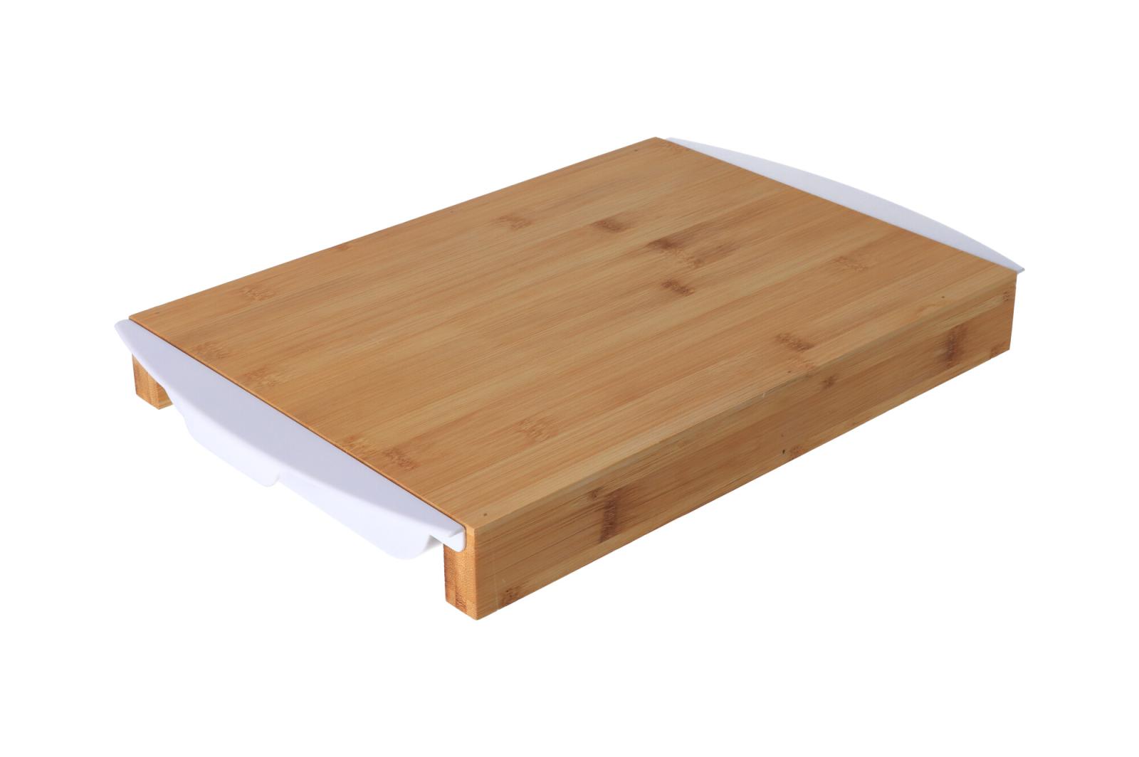 Krájecí deska z bambusu doplněná dvěma vyjímatelnými šuplíky Vám zajisti pořádek na kuchyňské lince a nakrájenou zeleninu můžete snadno přenést přímo do hrnce.
