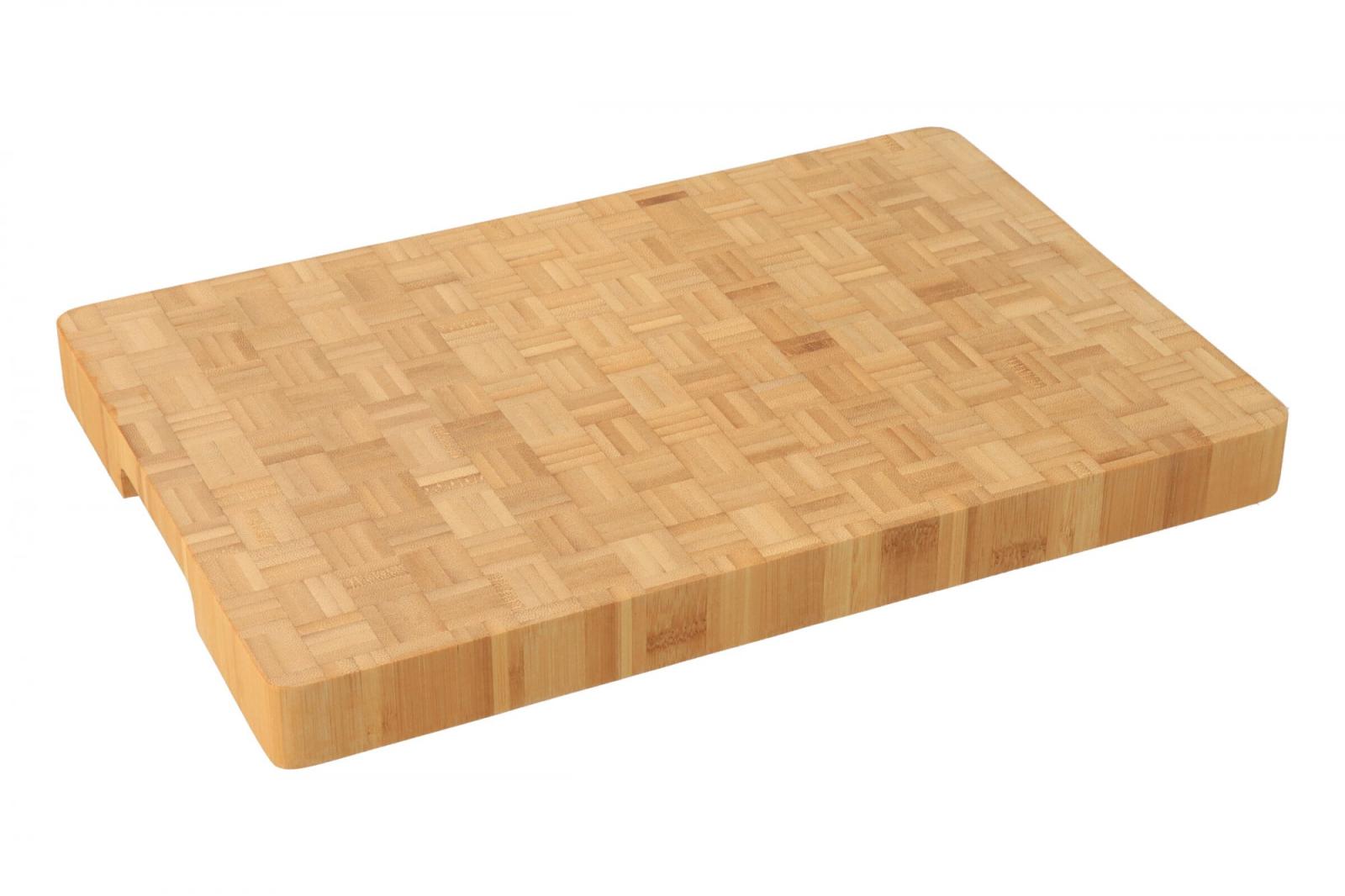 Elegantní a neobvyklé krájecí prkénko je velmi praktickým pomocníkem do každé kuchyně. Vyrábí se z bambusového dřeva. Jednotlivé kvádry jsou lepeny speciálním lepidlem s atestem pro styk s potravinami.