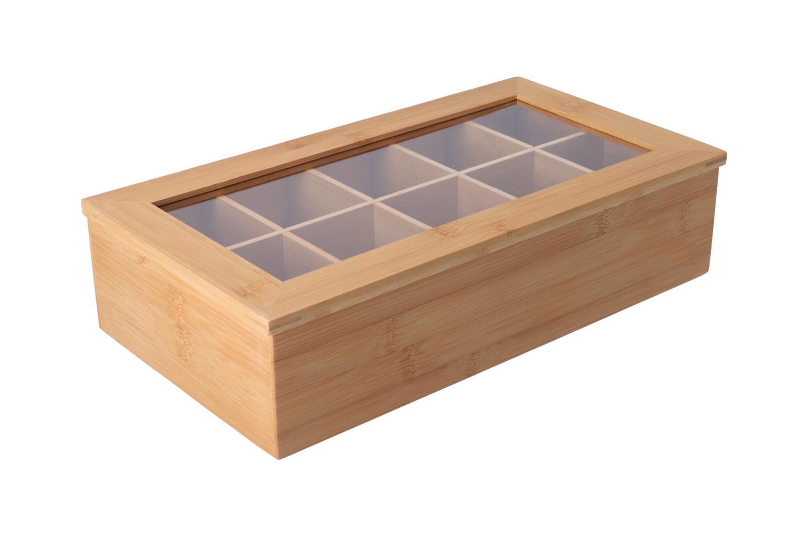Bambusový box na čaje se šesti přihrádkami Vám poslouží k uložení čajových sáčků. Díky plastovému víku si čaj dlouho udržuje svou lahodnou vůni.
