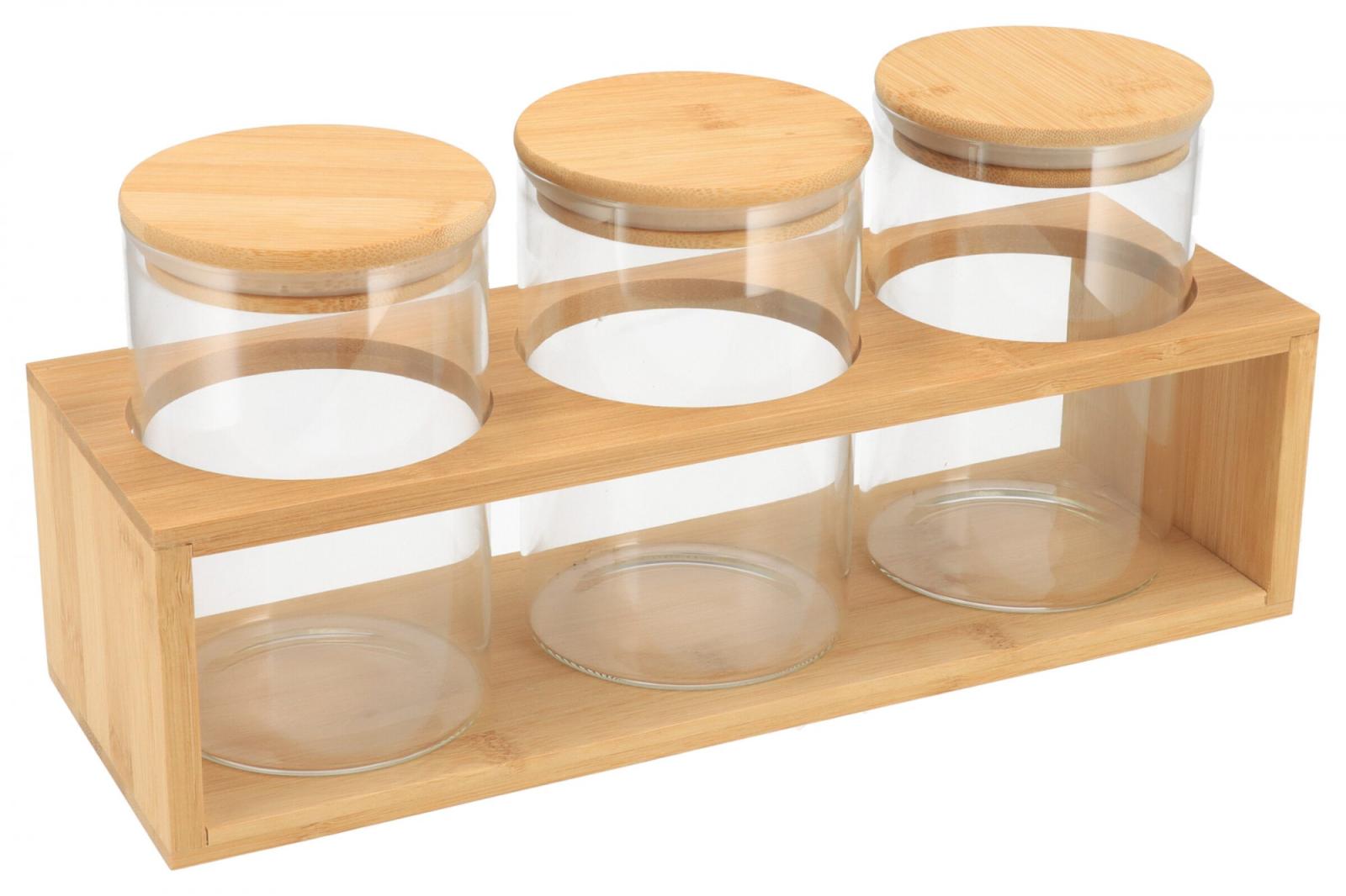 Kesper Kesper Bambusový stojan se skleněnými dózami 800 ml - 3ks