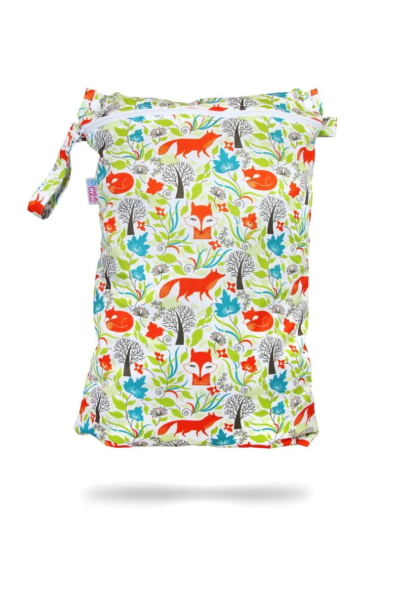 Dvouvelikostní nepromokavý pytel na pleny je je velice praktickou pomůckou, lze do něj kromě plen umístit i vyždímané plavky, oblečení, kosmetiku apod. V originálním vzoru s motivy moudrých lišek, se stane stylovým doplňkem ve vaší výbavičce!