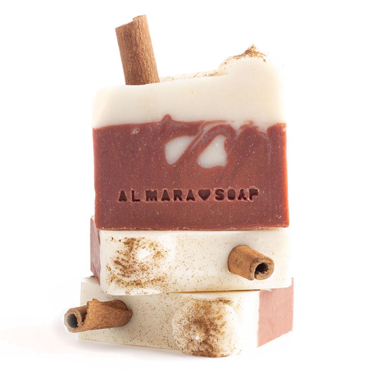 Mýdlo Apple Cider z limitované edice Almara Soap je tuhé veganské mýdlo umíchané ze zmýdelněných rostlinných olejů. Je vhodné pro normální pokožku. O krásnou barvu mýdla se postarala skořice, minerální barviva a oxid zinečnatý.