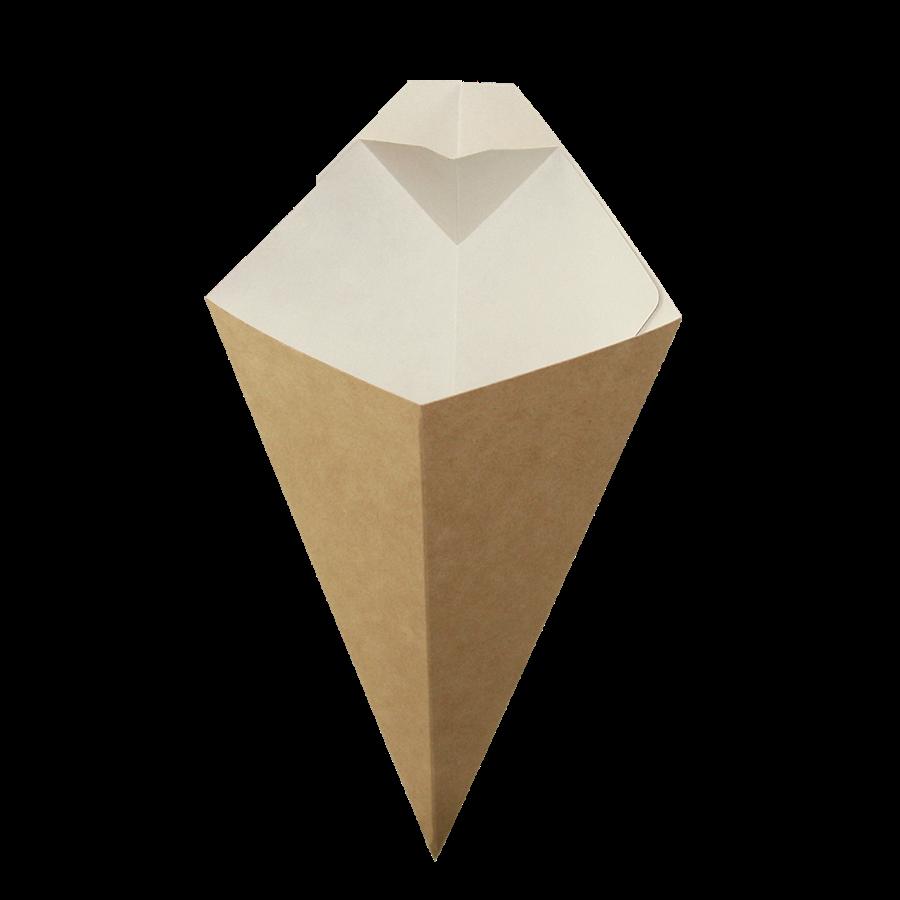 EcoPack Papírový kornout EKO na hranolky 198/270x165 mm 300/350 ml s kapsou na dip hnědý ideal pack® bal/40 ks