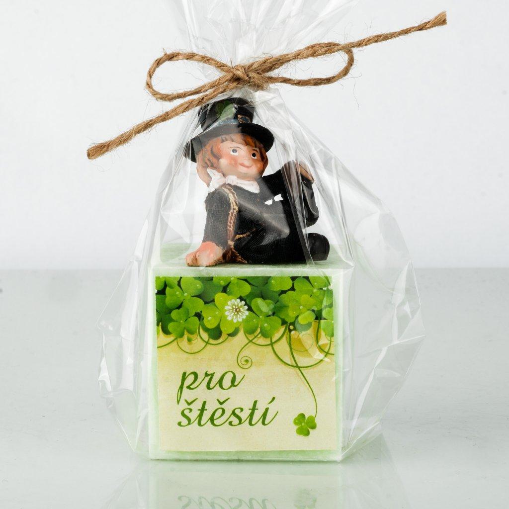 Aromka Přírodní vonná svíčka palmová - AROMKA - Dárkové balení pro štěstí - Kostka a socha kominíka