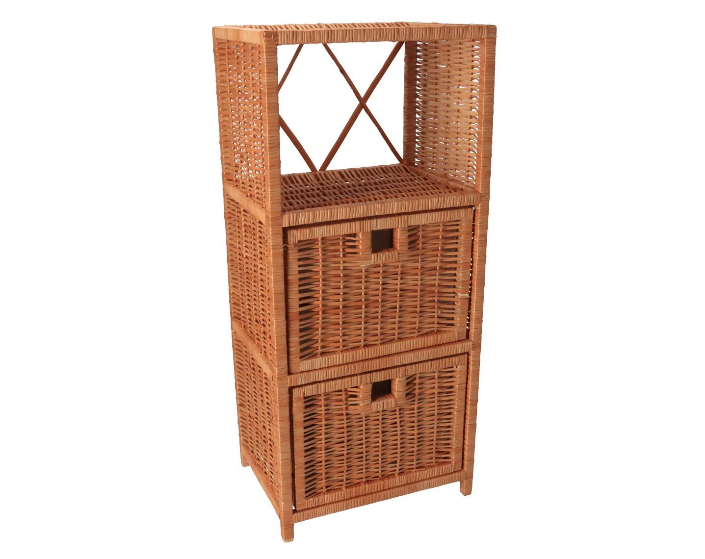 Komoda je vyrobena z vrbového proutí, má 2 přihrádky a odkládací prostor a nabízí dostatek prostoru pro uschování oblečení nebo jakýchkoliv drobností z domácnosti.