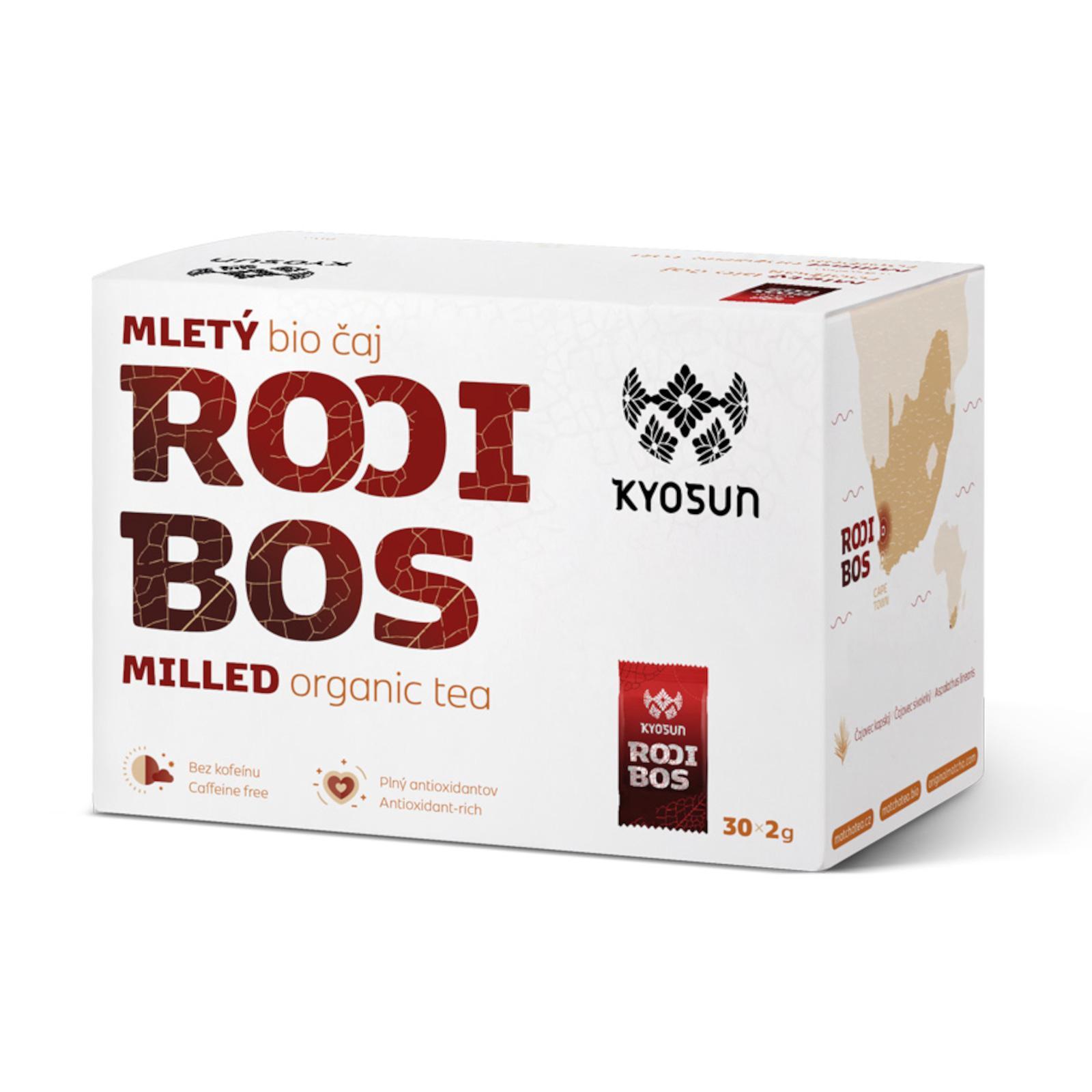 Čaj Rooibos Bio od značky Matcha Tea s nasládlou karamelovou nebo oříškovou chutí a obsahem antioxidantů. Výhodou Bio Kyosun Rooibos je, že jej pijeme mletý a ne pouze jako výluh. Rooibos neobsahuje žádný kofein. Je proto hodný i pro kojící maminky, těhotné ženy i děti., ale i pro lidi citlivé na kofein.