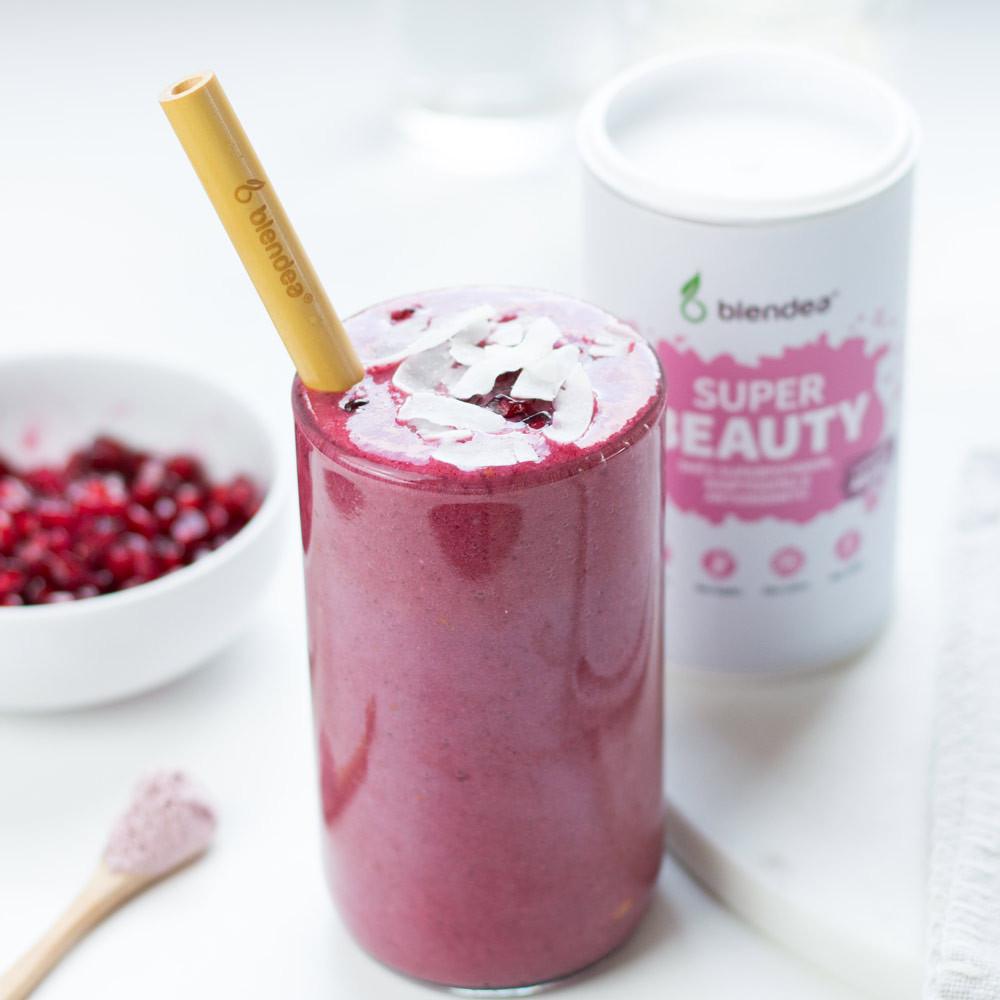 Rostlinná směs Superbeauty od značky Blendea je sypká směs různobarevných bobulí a jiných superpotravin z celého světa se svěží „berry“ příchutí, vysokým obsahem vlákniny a zdraví prospěšného vitaminu C. Součástí směsi je mix různobarevných plodů z celého světa a fialové mrkve. Směs Superbeauty je vhodná pro vegany, bez obsahu GMO, bez konzervačních látek a rafinovaného cukru.